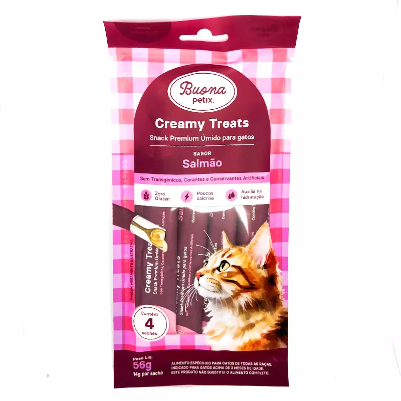 A Buona Petix Creamy Salmão é uma opção saborosa e nutritiva para agradar seu gato com um petisco cremoso e saudável. Com alto teor de umidade, é ideal para complementar a hidratação diária, além de ser enriquecida com vitaminas, taurina e ingredientes funcionais como o extrato de chá-verde.
