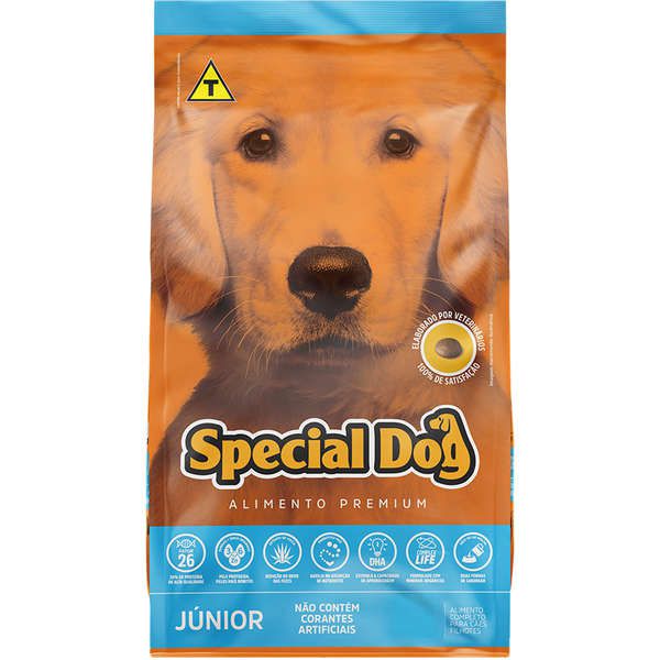 A Ração Special Dog Júnior Premium para Cães Filhotes foi criada com 26% de proteína e ômega 3 e 6. Promove uma pelagem mais firme e macia, deixando se cachorro com aspecto mais bonito.